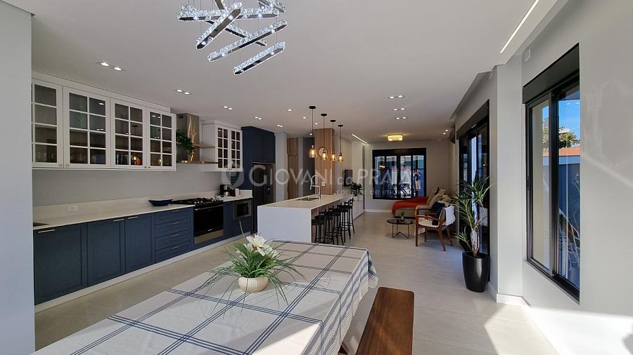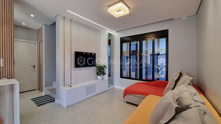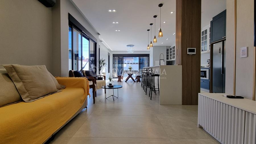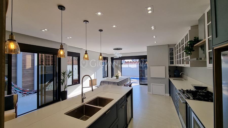 Na parte térrea temos um living completo e muito amplo, todo integrado dando aquela sensação de liberdade e conforto para juntar várias pessoas ao redor da mesa ou na piscina que também fica anexo a todo este espaço de confraternização.