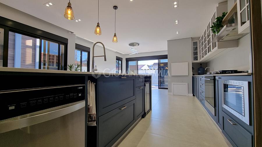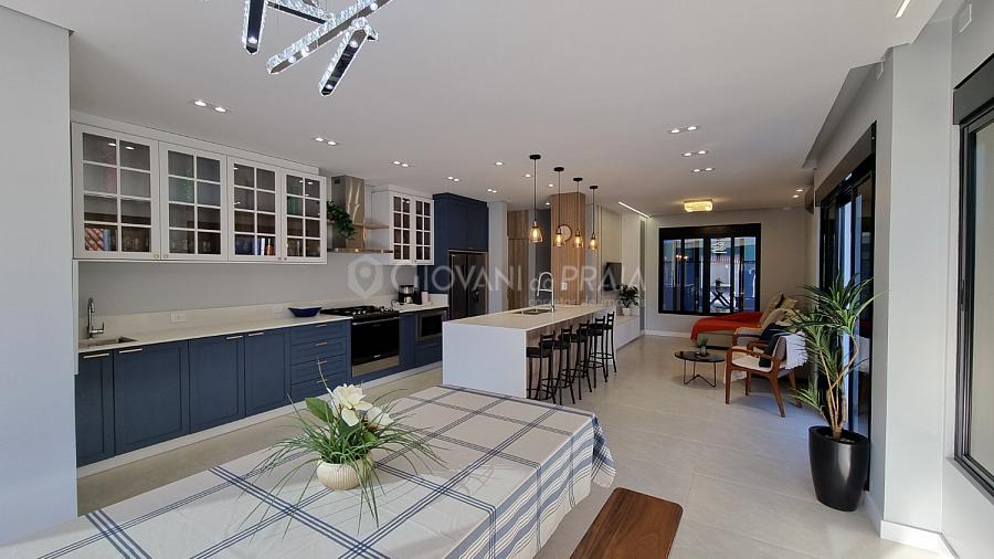 Possui 4 suítes na parte superior, um espaço ótimo para área de trabalho, sacada em 2 suítes e ainda uma lavanderia completa.