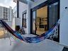 Garagem ampla para 2 carros grandes, muito espaço para depósito, espaço de serviço completo, espaço em volta da casa para boa ventilação, e ainda um redário também anexo ao living interno.